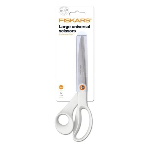 Nůžky Fiskars Functional Form™ 24 cm v bílé barvě jsou jsou ideální pro všestranné stříhání nejen v domácnosti. <br> Nůžky jsou navrženy tak, aby se snadno používaly, čistily a skladovaly. <br> Fazetový výbrus nůžek Fiskars Functional Form™ zajišťuje vynikající střižný výkon a dlouhodobou ostrost čepelí. <br> Dlouhé, tuhé čepele z nerezové oceli pro snadné střihání více vrstev různých materiálů najednou. <br> Ergonomicky navržená velká držadla zajišťují pohodlí a dobré držení. <br> Nůžky jsou určené pro praváky a mají nastavitelný přítlak čepelí. <br> Vyrobené ve Finsku.