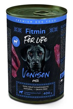 Nová receptura konzerv Fitmin For Life. Zvěřinová konzerva v podobě paté je vyrobena z čerstvého masa a díky tomu si zachovává jedinečnou chuť. Je vhodná jako doplnění a oživení suchého krmiva. Konzervy jsou doplňkové krmivo. Je Váš pes aktivní? Skáče, běhá, aportuje a potřebuje větší příjem energie? Neváhejte mu dát ochutnat zvěřinovou konzervu vyrobenou z čerstvého masa bez obsahu barviv, sóji, aromat a chemických dochucovadel. Díky šetrné přípravě zajišťuje masová konzerva zachování živin a vyvážený poměr vitamínů a minerálů. Díky tomu bude váš pes spokojený a plný energie.