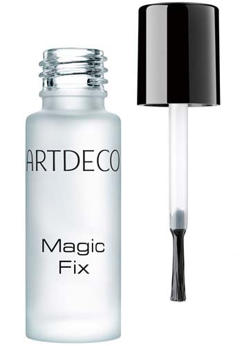 Po aplikaci konturovací tužky a rtěnky si po rtech poklepte kosmetickým ubrouskem. Pomocí štětce naneste Magic Fix jedním tahem na horní ret a jedním tahem na dolní ret, včetně kontur. S lehce otevřenou pusou nechte zaschnout, poté si mírně navlhčete rty jazykem. Pokud je rtěnka hodně mastná, aplikaci zopakujte.
