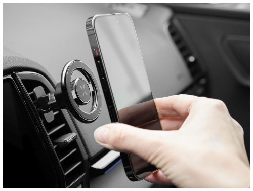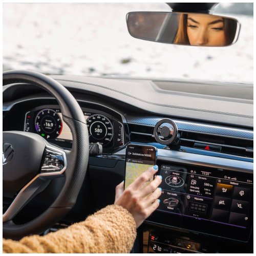 Magnetický držák s funkcí MagSafe Pro připevnění do mřížky ventilace Navržený přímo pro Apple iPhone série 12 a vyšší Speciální nalepovací podložka pro použití s ostatními telefony bez MagSafe 18 integrovaných magnetů po obvodu Utahovací kleště s jistícím hákem pro pevné uchycení do ventilace Vhodné pro většinu ventilačních mřížek automobilu Bezpečně udrží vložený telefon i při sebevětších otřesech Otočný kloub pro nastavení do ideálního pozorovacího úhlu