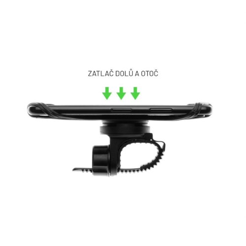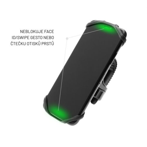 Odnímatelný držák telefonu na kolo nebo motocykl Univerzální provedení pro všechny typy telefonů o velikosti 4" - 6,5" Intuitivní systém odepnutí hlavy držáku i s připnutým telefonem Umožní bez problémů používat funkce FaceID, Swipe i čtečku otisků prstů Vyroben z kombinace jemného a flexibilního silikonu a základny z tvrzeného plastu