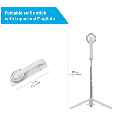 Nastavitelná délka až 72 cm Lze použít jako stativ Odnímatelná spoušť s dosahem až 10 m Podporované telefony iPhone 12 a novější Uchycení pomocí MagSafe Kompatibilní s MagSafe kryty