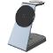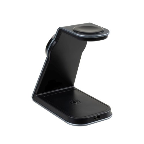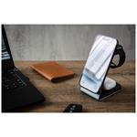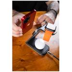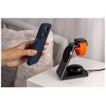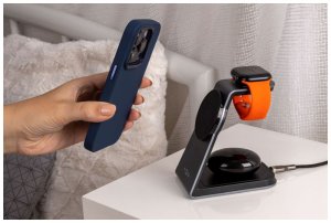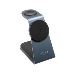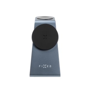 FIXED MagPowerstation Alu je luxusní a minimalistický nabíjecí stojánek pro všechny majitele Apple zařízení. Dokáže současně nabíjet iPhone s podporou MagSafe, bezdrátová sluchátka AirPods a hodinky Apple Watch. Váš IPhone stačí přiložit k oválné nabíjecí ploše na přední straně držáku, magnety telefon přichytí a okamžitě spustí bezdrátové nabíjení s výkonem 7,5W (15W max), které nabije iPhone maximální rychlostí. Sekundární nabíjecí plocha na zadní straně stojánku je určena pro AirPods nebo jiná bezdrátová sluchátka, podporuje Qi nabíjení s výkonem 3,5W. Třetí nabíjecí plochou je integrovaná bezdrátová nabíječka přímo pro Apple Watch pro pohodlné každodenní dobíjení hodinek. Tělo stojánku MagPowerstation Alu je vyrobeno z broušené hliníkové slitiny v barvě Space Gray, dokonale tak ladí s ostatními Apple zařízeními. Jemný silikonový povrch nabíjecích částí stojánku zabrání poškrábání vložené elektroniky a protiskluzové podložky ve spodní části zajistí stabilní umístění na pracovním stole nebo nočním stolku. Stav nabíjení ukazuje LED dioda na čelní straně stojánku. Samotný stojánek je nabíjený pomocí USB-C kabelu, pro plný výkon FIXED MagPowerstation Alu je vhodné použít nabíjecí adaptér s výkonem minimálně 25W a standardem Power Delivery 3.0 (není součástí balení).