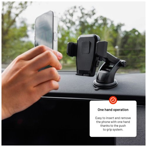 S dlouhou přísavkou Univerzální držák telefonu na čelní sklo či palubní desku Vlastní design vyvinutý v České republice Pro telefony o šířce 5,3 cm - 8,3 cm (uhlopříčka až 6,8") Rychloupínací systém Push and grip pro bezpečné uchycení telefonu Tiché a plynulé ovládání držáku Snadné ovládání jednou rukou