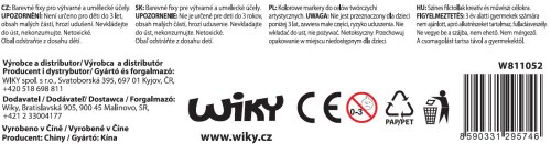 Seznam varování týkajících se bezpečnosti tužek, fixů a fixů vychází z požadavků nařízení (EU) 2023/988 o obecné bezpečnosti výrobků (GPSR). * Ujistěte se, že je výrobek určen pro příslušnou věkovou skupinu, abyste předešli možným rizikům spojeným s nevhodným používáním. * Zajistěte dostatečnou ventilaci během používání výrobku, abyste zabránili vdechování výparů rozpouštědel. * Vyhněte se kontaktu přípravku s pokožkou a očima. V případě kontaktu důkladně omyjte vodou. * Výrobek uchovávejte mimo dosah dětí, aby se zabránilo náhodnému spolknutí nebo vdechnutí. * Používejte výrobek podle zamýšleného účelu, abyste se vyhnuli možným rizikům spojeným s nevhodným používáním. * Nepoužívejte výrobek v blízkosti otevřeného ohně nebo zdrojů tepla, abyste zabránili vzniku požáru. * Ujistěte se, že je výrobek řádně označen v souladu s platnými předpisy. * Zkontrolujte, zda má výrobek certifikáty bezpečnosti, jako je CE, abyste se ujistili, že splňuje bezpečnostní normy. * V případě zjištění jakýchkoliv vad nebo poškození výrobku přestaňte výrobek používat. * Postupujte podle pokynů výrobce týkajících se používání, údržby a skladování výrobku. * Informujte děti o zásadách bezpečného používání výrobku. * Při používání výrobku dohlížejte na děti. * Zajistěte vhodné podmínky skladování produktu, abyste zachovali jeho vlastnosti a vyhnuli se potenciálním rizikům. * Vyhněte se míchání různých typů tužek, fixů a fixů, abyste se vyhnuli nežádoucím chemickým reakcím. * Nenechávejte tužky, fixy a fixy otevřené bez dozoru, abyste zabránili vysušení a možným rizikům spojeným s nevhodným používáním. * Pamatujte, že některé fixy, popisovače a fixy mohou obsahovat látky škodlivé pro životní prostředí. Dodržujte pravidla recyklace a likvidace. * Zajistěte při používání výrobku dostatečné osvětlení, abyste předešli únavě zraku. * Vyhněte se dlouhodobému vdechování výparů produktu, abyste se vyhnuli možným zdravotním problémům. * Pokud se objeví alergická reakce, okamžitě přestaňte přípravek používat a poraďte se s lékařem.