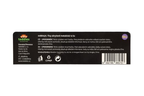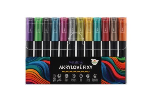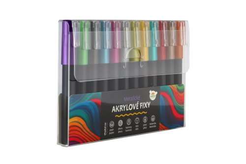 Akrylové fixy Vám pomohou podpořit Vaši představivost, kreativitu a přenesou všechny Vaše nápady na různé materiály. Fixy vhodné na papír, dřevo, kameny, sklo, plast a keramiku. Balení obsahuje 12 ks metalických fixů. Před použítím, protřepejte. Není hračka.