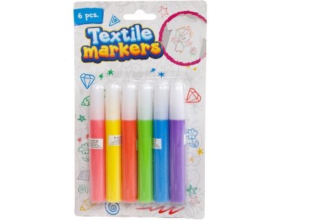 Fixy určené k malování na textil. V balení 6 barev. Baleno na kartě. Rozměry balení 19x11,5x1,5 cm. Věk 3+