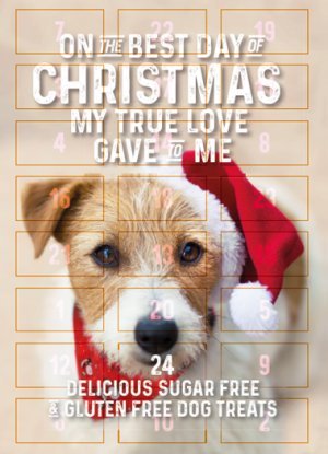 Kalendář obsahuje pamlsky bez lepku a přidaného cukru. Vhodné pro psy od 6 měsíců.
