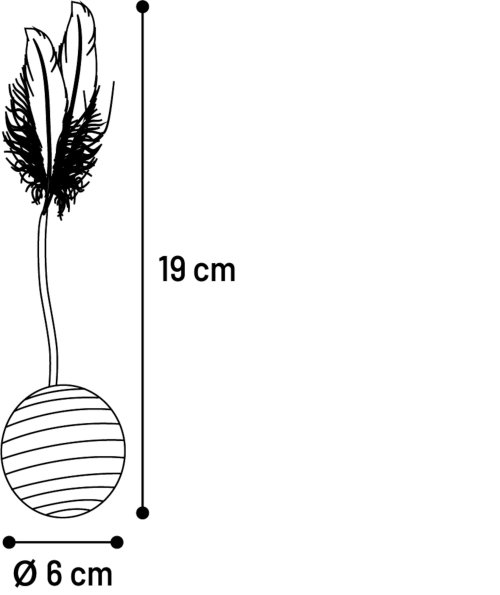 Jutový míček s peříčky Frits je stvořený přímo pro Vaši kočku! Je vyroben z plastu a jutového lana o tloušťce 2,5 mm. Zaujme chrastivým zvukem a peříčky pro extra zábavu.