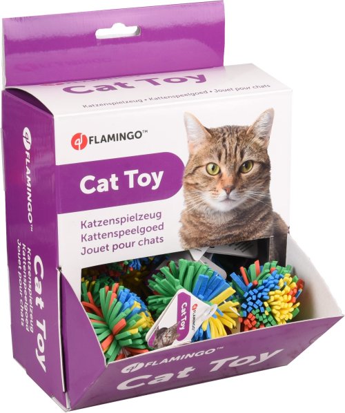 Tato střapatá barevná hračka zaujme Vaši kočku a nabídne zábavu na několik hodin. Průměr 4,5cm.