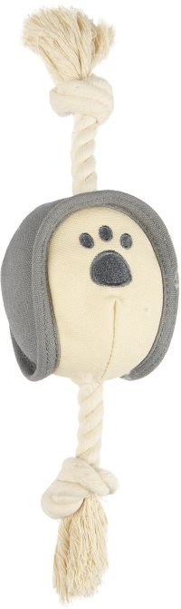 Tato hračka je vyrobena ze speciální látky, která se pyšní certifikací GOTS - ekologický a sociální řetězec zpracování textilií. Na obou koních bavlněného lana jsou uzly, které Vašeho psa rozhodně zaujmou a můžete se s ním pořádně přetahovat. Barva míčku je šedo béžová. Délka 33cm.