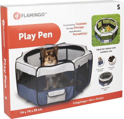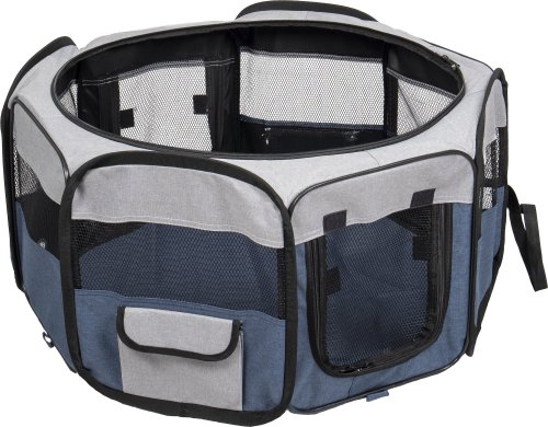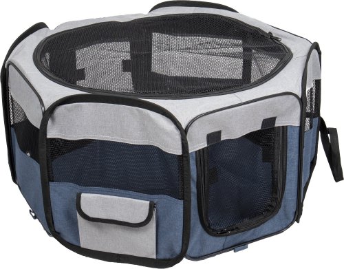Cestovní ohrádka pro psy je praktická a lehká. Jednoduše se složí do velikosti tašky, a proto si ji můžete vzít všude s sebou. V přední a zadní části je vstupní otvor na zip. Vrchní síťka je odnímatelná. Praktická kapsa na boční straně Vám umožní uschovat potřebné věci.