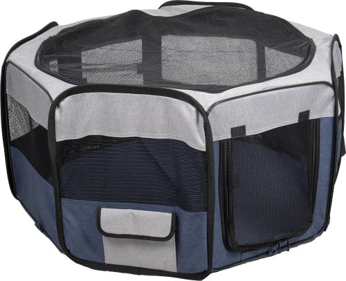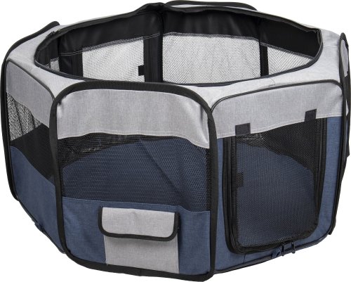 Cestovní ohrádka pro psy je praktická a lehká. Jednoduše se složí do velikosti tašky, a proto si ji můžete vzít všude s sebou. V přední a zadní části je vstupní otvor na zip. Vrchní síťka je odnímatelná. Praktická kapsa na boční straně Vám umožní uschovat potřebné věci.