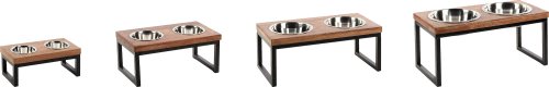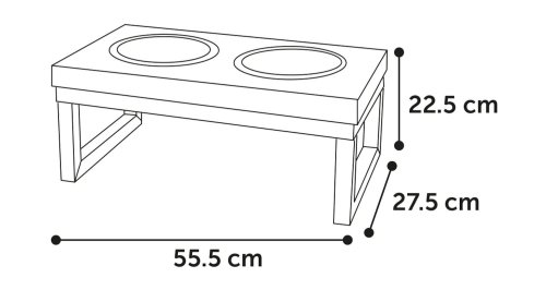 Stabilní kovová konstrukce s černou povrchovou úpravou a ochranou proti poškrábání podlahy. Deska z mangového dřeva se 2 vyjímatelnými miskami. Nerezové misky lze mýt v myčce. Pro psy všech velikostí a plemen. Určen pro vnitřní použití. Dopřejte svému věrnému čtyřnohému příteli stylový kulinářský zážitek!