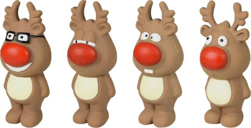 Tito legrační vánoční sobíci jsou ideální nejen pro sváteční hry! Vyrobené z latexu, se zabudovaným pískátkem, ve 4 designech - který z nich získáte, je překvapením, ale hodiny hraní jsou zaručeny :)