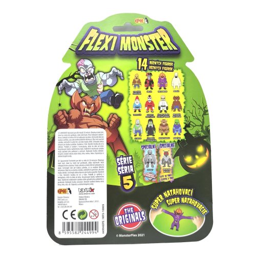 Flexi Monster serie 5 je tady! Na výběr máte ze 14ti různých strašidelných figurek. Natahujte je, roztahujte je, mačkejte je, proplétejte jim končetiny. Jsou odporní, jsou strašidelní, ale rozhodně vás nebudou nudit. Rozměry balení 16 x 23 x 5 cm. Vhodné pro děti od 3 let.