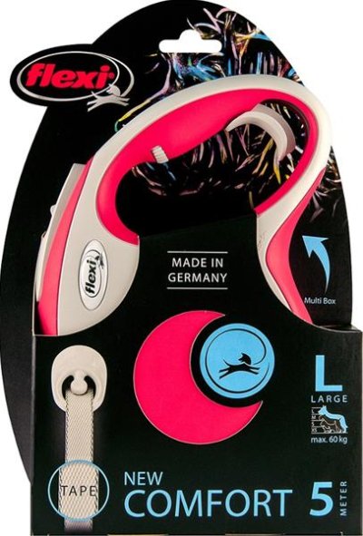 Dokonale navržené dvoubarevné vodítko Vás upoutá na první pohled. New Comfort nabízí všechny funkce, které potřebujete a proto si ho brzy zamilujete! Vylepšený brzdový systém s krátkým zdvihem umožňuje více kontroly, ergonomické držadlo je nastavitelné dle velikosti ruky (od velikosti M). Lze přidat i Multi Box pro ukládání pamlsků či sáčků (od velikosti S). Rodinná firma flexi vyrábí výhradně na území Německa. V závodě v Bargteheide u Hamburgu vzniká vše, počínaje návrhem až po výrobu vysoce kvalitních vodítek – Made in Germany. Firma flexi je vynálezcem samonavíjecího vodítka a jedničkou na světovém trhu, exportuje do více než 90 zemí světa. Originální samonavíjecí vodítka flexi se vyznačují patentovaným, po technické stránce nejmodernějším pružinovým systémem a komfortním ovládáním. Jsou vyráběna z vysoce kvalitních materiálů, exkluzivně manuálně zpracovaná a sestavená. Vodítka prochází před expedicí mnoha kontrolami kvality. Velikost: L – vhodné pro psy o hmotnosti do 60 kg. Typ vodítka: Navíjecí – pásek. Délka pásku/lanka: 5 m Barva: červená