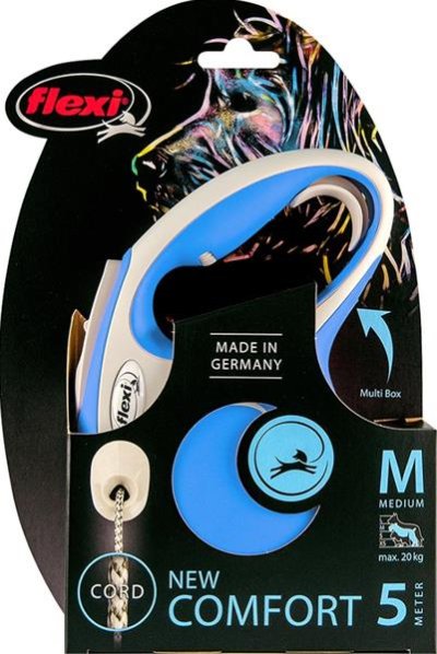 Dokonale navržené dvoubarevné vodítko Vás upoutá na první pohled. New Comfort nabízí všechny funkce, které potřebujete a proto si ho brzy zamilujete! Vylepšený brzdový systém s krátkým zdvihem umožňuje více kontroly, ergonomické držadlo je nastavitelné dle velikosti ruky (od velikosti M). Lze přidat i Multi Box pro ukládání pamlsků či sáčků (od velikosti S). Rodinná firma flexi vyrábí výhradně na území Německa. V závodě v Bargteheide u Hamburgu vzniká vše, počínaje návrhem až po výrobu vysoce kvalitních vodítek – Made in Germany. Firma flexi je vynálezcem samonavíjecího vodítka a jedničkou na světovém trhu, exportuje do více než 90 zemí světa. Originální samonavíjecí vodítka flexi se vyznačují patentovaným, po technické stránce nejmodernějším pružinovým systémem a komfortním ovládáním. Jsou vyráběna z vysoce kvalitních materiálů, exkluzivně manuálně zpracovaná a sestavená. Vodítka prochází před expedicí mnoha kontrolami kvality. Velikost: M – vhodné pro psy o hmotnosti do 20 kg. Typ vodítka: Navíjecí – lanko. Délka pásku/lanka: 5 m Barva: modrá