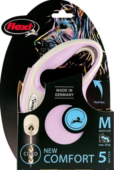 Dokonale navržené dvoubarevné vodítko Vás upoutá na první pohled. New Comfort nabízí všechny funkce, které potřebujete a proto si ho brzy zamilujete! Vylepšený brzdový systém s krátkým zdvihem umožňuje více kontroly, ergonomické držadlo je nastavitelné dle velikosti ruky (od velikosti M). Lze přidat i Multi Box pro ukládání pamlsků či sáčků (od velikosti S). Rodinná firma flexi vyrábí výhradně na území Německa. V závodě v Bargteheide u Hamburgu vzniká vše, počínaje návrhem až po výrobu vysoce kvalitních vodítek – Made in Germany. Firma flexi je vynálezcem samonavíjecího vodítka a jedničkou na světovém trhu, exportuje do více než 90 zemí světa. Originální samonavíjecí vodítka flexi se vyznačují patentovaným, po technické stránce nejmodernějším pružinovým systémem a komfortním ovládáním. Jsou vyráběna z vysoce kvalitních materiálů, exkluzivně manuálně zpracovaná a sestavená. Vodítka prochází před expedicí mnoha kontrolami kvality. Velikost: M – vhodné pro psy o hmotnosti do 20 kg. Typ vodítka: Navíjecí – lanko. Délka pásku/lanka: 5 m Barva: světle růžová