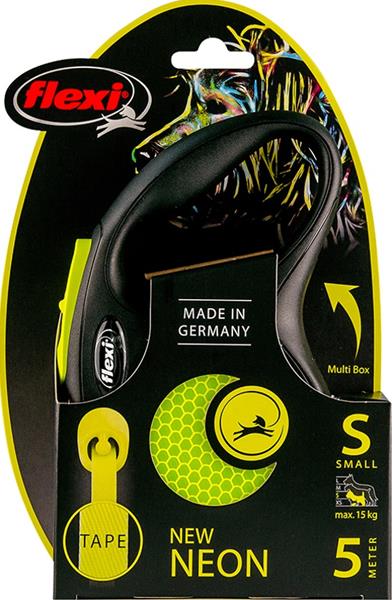 New Neon je vynikající vodítko, které díky reflexním nálepkám a neonově zbarveným prvkům vyniká za všech povětrnostních podmínek. Reflexní nálepky odráží světlomety ve vzdálenosti více než 150 m. Díky neonově zbarveným prvkům jste lépe viděni, jste ve větším bezpečí! Vy a Váš pes patříte k sobě jako jeden tým! Lidé Vás uvidí již z dálky. Vylepšený brzdový systém s krátkým zdvihem umožňuje více kontroly. Lze přidat (od velikosti S) i Multi Box pro ukládání pamlsků či sáčků. Rodinná firma flexi vyrábí výhradně na území Německa. V závodě v Bargteheide u Hamburgu vzniká vše, počínaje návrhem až po výrobu vysoce kvalitních vodítek – Made in Germany. Firma flexi je vynálezcem samonavíjecího vodítka a jedničkou na světovém trhu, exportuje do více než 90 zemí světa. Originální samonavíjecí vodítka flexi se vyznačují patentovaným, po technické stránce nejmodernějším pružinovým systémem a komfortním ovládáním. Jsou vyráběna z vysoce kvalitních materiálů, exkluzivně manuálně zpracovaná a sestavená. Vodítka prochází před expedicí mnoha kontrolami kvality. Velikost: S – vhodné pro psy o hmotnosti do 15 kg. Typ vodítka: Navíjecí – pásek. Délka pásku/lanka: 5 m Barva: žlutá