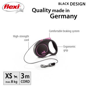 Flexi Vodítko Black Design XS lanko 3m černo-růžové