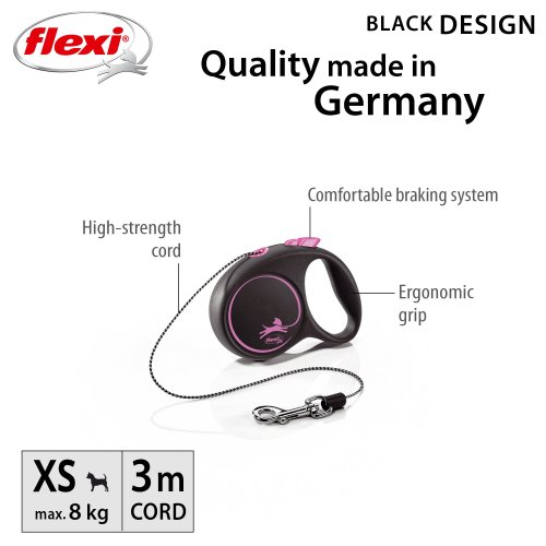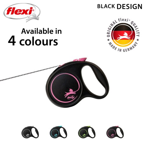 Černá je zpět! Vodítko z řady flexi® Black Design upoutá pozornost na první pohled. Výrazné barvy elegantně kontrastují s černým pouzdrem. Moderní design lze zároveň kombinovat s praktickými doplňky flexi®.