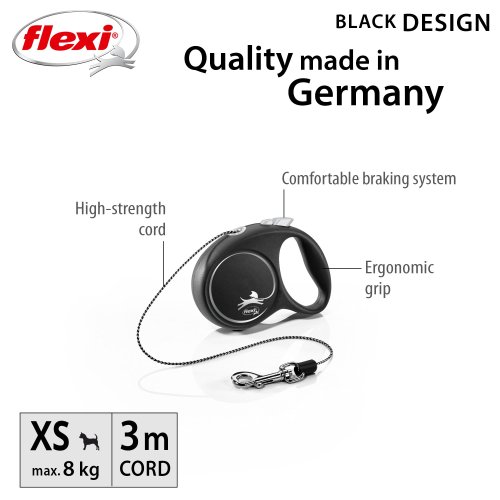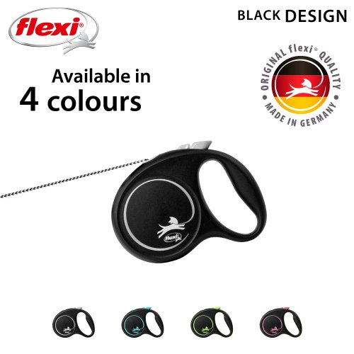 Černá je zpět! Vodítko z řady flexi® Black Design upoutá pozornost na první pohled. Výrazné barvy elegantně kontrastují s černým pouzdrem. Moderní design lze zároveň kombinovat s praktickými doplňky flexi®.