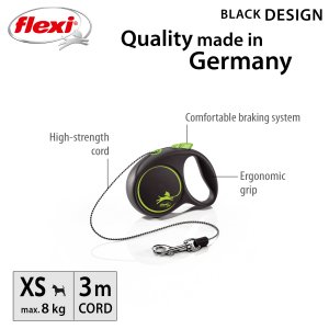 Flexi Vodítko Black Design XS lanko 3m černo-zelené