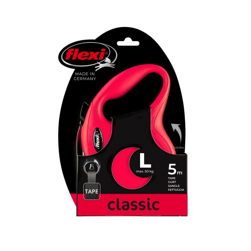 Vodítka flexi® Classic nabízí pohodlný úchop, odolný navíjecí systém i kvalitní, bezpečný a intuitivní brzdový systém, který ve zlomku vteřiny zastaví pohyb psa. Pro snadné upevnění vodítka k obojku nebo postroji je vodítko opatřeno chromovanou karabinou. Samozřejmostí je zdokonalený výstup pásku, který zajišťuje manipulaci v libovolném směru bez zasekávání - potvrzeno nesčetnými testy.