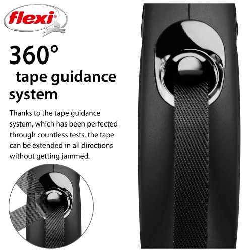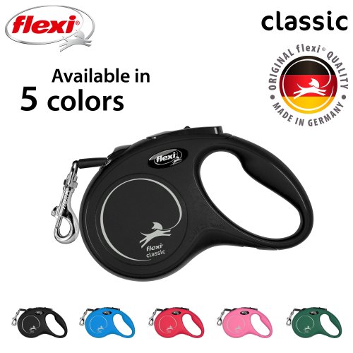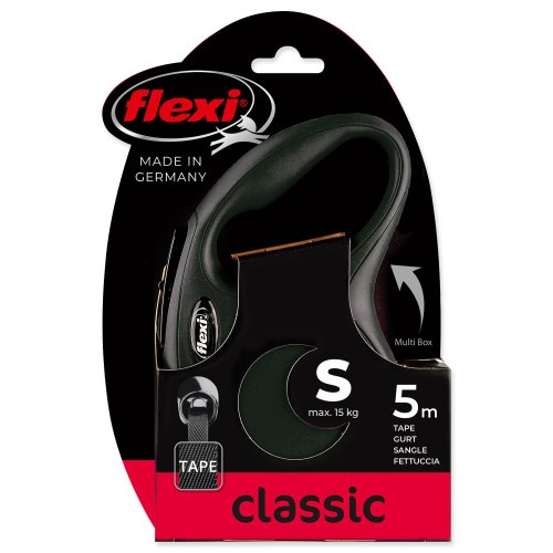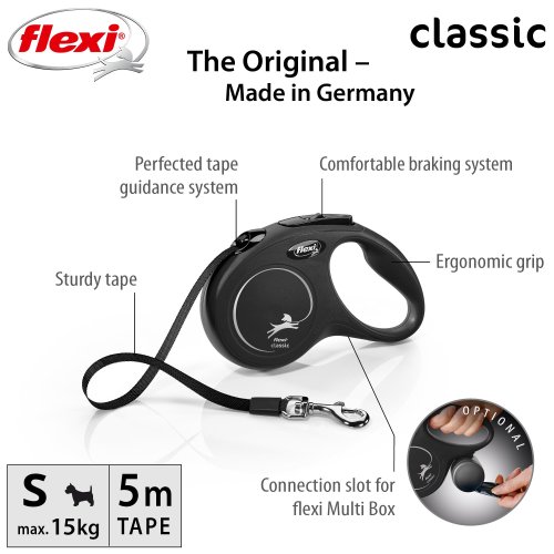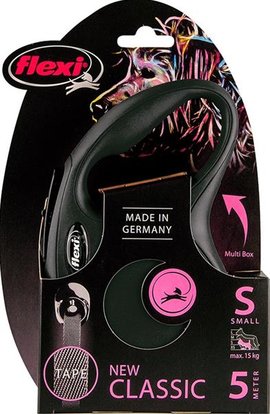 Vodítka flexi® Classic nabízí pohodlný úchop, odolný navíjecí systém i kvalitní, bezpečný a intuitivní brzdový systém, který ve zlomku vteřiny zastaví pohyb psa. Pro snadné upevnění vodítka k obojku nebo postroji je vodítko opatřeno chromovanou karabinou. Samozřejmostí je zdokonalený výstup pásku, který zajišťuje manipulaci v libovolném směru bez zasekávání - potvrzeno nesčetnými testy.
