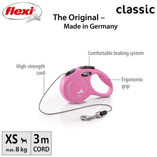 Vodítka flexi® Classic nabízí pohodlný úchop, odolný navíjecí systém i kvalitní, bezpečný a intuitivní brzdový systém, který ve zlomku vteřiny zastaví pohyb psa. Pro snadné upevnění vodítka k obojku nebo postroji je vodítko opatřeno chromovanou karabinou.