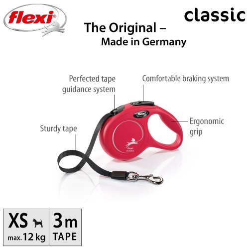 Vodítka flexi® Classic nabízí pohodlný úchop, odolný navíjecí systém i kvalitní, bezpečný a intuitivní brzdový systém, který ve zlomku vteřiny zastaví pohyb psa. Pro snadné upevnění vodítka k obojku nebo postroji je vodítko opatřeno chromovanou karabinou. Samozřejmostí je zdokonalený výstup pásku, který zajišťuje manipulaci v libovolném směru bez zasekávání - potvrzeno nesčetnými testy.