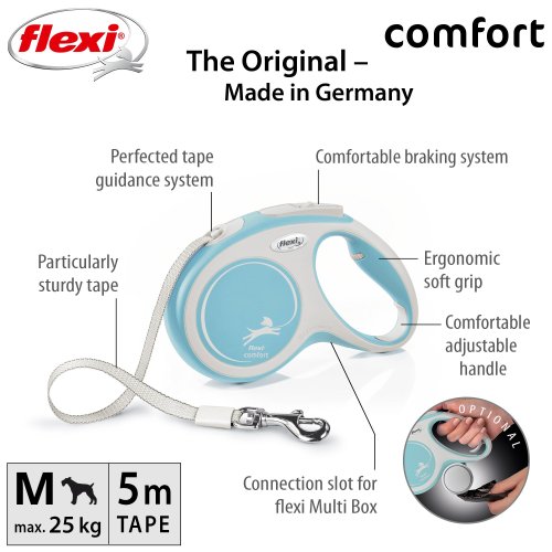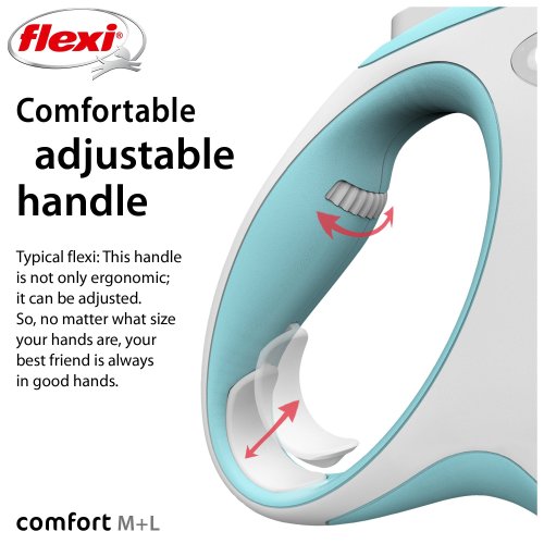 Pohodlné a díky svému dokonale sladěnému designu i unikátní - to je vodítko flexi® Comfort, které nabízí Vašemu čtyřnohému příteli vše, co psi milují: pohyb, pohyb a ještě jednou pohyb! Vás jistě potěší extra pohodlná, měkká rukojeť (ve velikosti M a L je navíc nastavitelná) i zdokonalený výstup a vedení pásku všemi směry bez zasekávání. Na každé procházce oceníte i bezpečný a intuitivní brzdový systém, který ve zlomku vteřiny zastaví pohyb psa. Pro snadné upevnění vodítka k obojku nebo postroji je vodítko opatřeno kvalitní chromovanou karabinou.