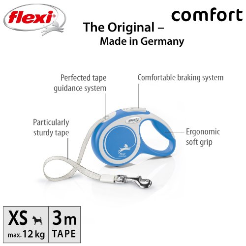 Pohodlné a díky svému dokonale sladěnému designu i unikátní - to je vodítko flexi® Comfort, které nabízí Vašemu čtyřnohému příteli vše, co psi milují: pohyb, pohyb a ještě jednou pohyb! Vás jistě potěší extra pohodlná, měkká rukojeť (ve velikosti M a L je navíc nastavitelná) i zdokonalený výstup a vedení pásku všemi směry bez zasekávání. Na každé procházce oceníte i bezpečný a intuitivní brzdový systém, který ve zlomku vteřiny zastaví pohyb psa. Pro snadné upevnění vodítka k obojku nebo postroji je vodítko opatřeno kvalitní chromovanou karabinou.