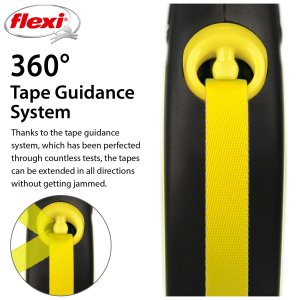 Flexi® Neon zároveň nabízí i nesčetnými testy zdokonalený výstup a vedení pásku všemi směry bez zasekávání. S délkou 5 m poskytuje Vašemu parťákovi potřebnou volnost pohybu.