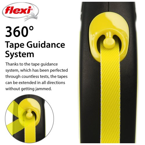 Flexi® Neon zároveň nabízí i nesčetnými testy zdokonalený výstup a vedení pásku všemi směry bez zasekávání. S délkou 5 m poskytuje Vašemu parťákovi potřebnou volnost pohybu.