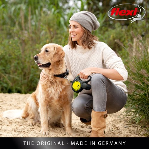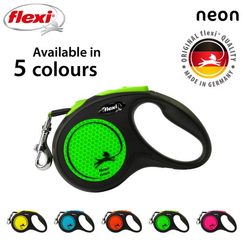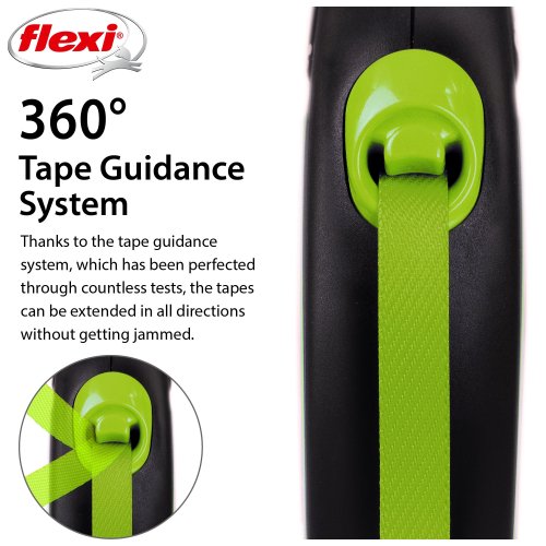 Flexi® Neon zároveň nabízí i nesčetnými testy zdokonalený výstup a vedení pásku všemi směry bez zasekávání. S délkou 5 m poskytuje Vašemu parťákovi potřebnou volnost pohybu.