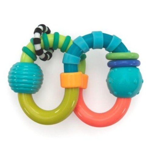 Měkké, velmi flexibilní kousátko v zářivých barvách s pohybujícími se kroužky.