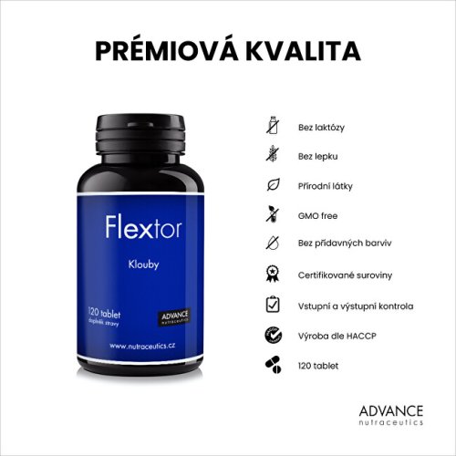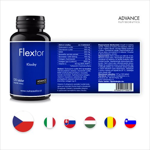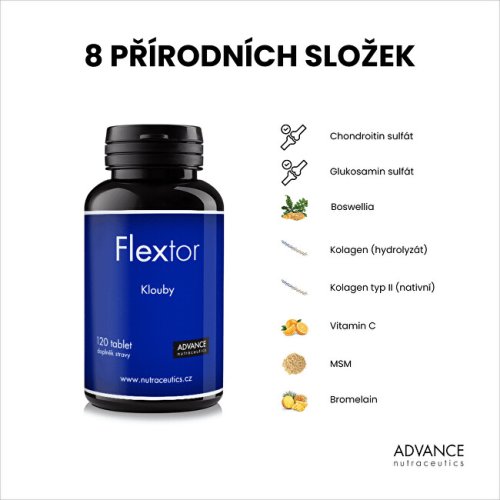 Flextor je unikátní kloubní přípravek s kombinací 7 aktivních látek pro komplexní péči o klouby.