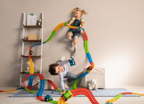 Smoby FleXtreme je zcela nový herní svět, který neomezuje dětskou kreativitu! Pomocí flexibilních kolejnic mohou děti sestavovat nejbláznivější závodní dráhy s pořádným stoupáním, klesáním a divokými zatáčkami a vyřádit se u neuvěřitelných kaskadérských kousků na dráze s výkonnými závodními vozy FleXtreme! Startovací sadu FleXtreme ideálně doplňuje tato FleXtreme sada s dalšími dílky pro prodloužení závodní dráhy. Sada obsahuje celkem 72 dílků dráhy ve čtyřech barvách (každá po 18 kusech), které lze sestavit do celkové délky 1,72 metru.