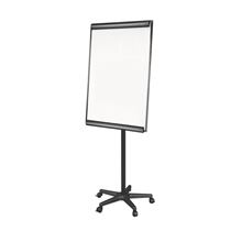 • Flipchart s lakovanou magnetickou popisovatelnou tabulí je díky kolečkovému systému lehce pohyblivý; kolečka je možné zabrzdit pro snazší psaní na tabuli