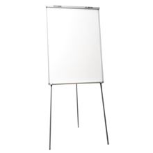 Flipchart s lakovaným kovovým povrchem Magnetická a za sucha stíratelná pracovní plocha Rám z eloxovaného hliníku s plastovými rohy Rychloupínací systém pro uchycení libovolných papírových bloků s děrováním …