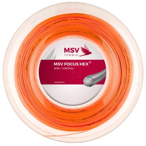 Již řadu let nejoblíbenejší a nejprodávanější výplet z řady MSV a to zejména pro svůj šestihranný profil a stálost napětí, významnou roli hraje i cena,která je oproti jiným značkám výpletů ve stejné kvalitě poloviční až třetinová. Ve všech vlastnostech nejlepší na německém Saitenforum.de (Životnost, Síla, Kontrola, Cit, Komfort, Spin, Stabilita napětí). Celková spokojenost testujících hráčů 91% (39/43 testerů). CoPoly výplet nové generace, HEXagonální profil struny (šestiúhelník). Velmi dobrá trvanlivost strun. Výplet nabízí stálé napětí a dlouhodobý výkon. MSV Focus HEX ztrácí po 30-ti dnech a mnoha hodinách usilovné hry pouze 13% ze svého napětí. Velkou výhodou je potenciál pro spinové údery. Hráči ho popisují jako "nejlepší výplet na spinové údery", a to ve všech jeho průměrech. Hra s tímto výpletem je navíc velmi pohodlná.