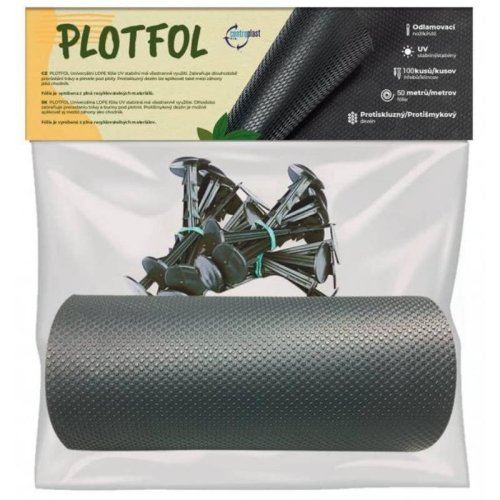 univerzální UV stabilní LDPE folie šíře 25 cm, tloušťka 1,4 mm boustranný variabilní dezén, protiskluzný i za deštivého počasí velmi jednoduchá pokládka balení SET PLOTFOL role 10 m, 20 ks plastových …
