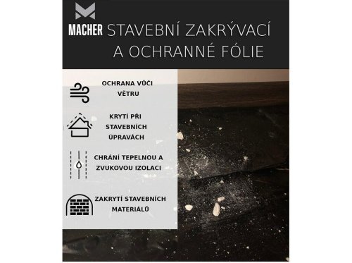 Univerzální stavební fólie pro ochranu před nečistotami a prachem. Fólie je určena také jako ochrana proti dešti a sněhu.