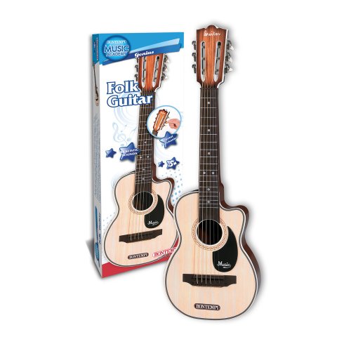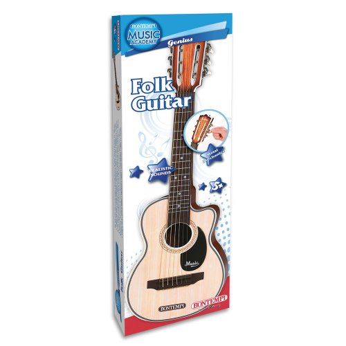 Folková kytara s 6 kovovými strunami, kovovu mechanikou, realistickým zvukem a trsátkem.