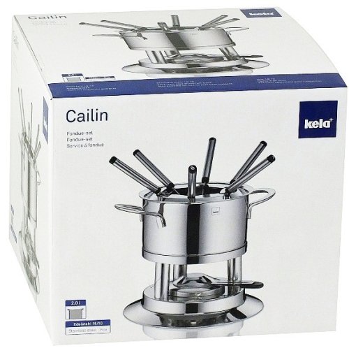• nerezová ocel 18/10- Sada obsahuje:- 1 x fondue hrnec z 18/10 nerezové oceli- 1 x poklička 18/10 nerezové oceli- 1 x nerez stojánek- 6 x fondue vidliček v 18/10 nerezové oceli označené 1-6- 1 x hořák na pastu z nerezové oceli bezpečnostní- výška: 20 cm- průměr: 22 cmLuxusní hrnce a pánve německé značky KELA, řady Cailin se zárukou 5 let jsou vyrobeny z leštěné nerezové oceli 18/10, mají vícevrstvé termoakumulační dno, sílu stěny 0,8 mm, skleněné poklice a nerezové rukojeti. Jsou vhodné pro všechny typy sporáků včetně indukčních.