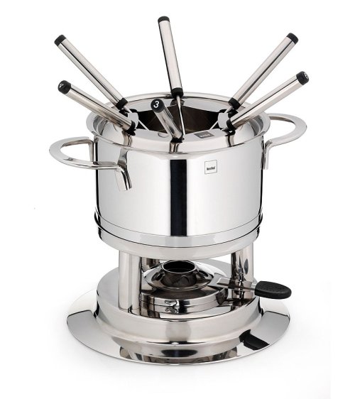 - nerezová ocel 18/10- Sada obsahuje:- 1 x fondue hrnec z 18/10 nerezové oceli- 1 x poklička 18/10 nerezové oceli- 1 x nerez stojánek- 6 x fondue vidliček v 18/10 nerezové oceli označené 1-6- 1 x hořák …