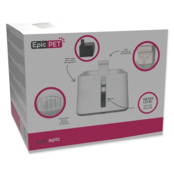Fontána, která zvířeti zaručuje neomezený přístup k čerstvé pitné vodě. Tekoucí voda je vždy atraktivnější a tak přirozeně podporuje dostatečný příjem tekutin, který pomáhá zejména u koček předcházet tvorbě močových kamenu. Přepad, který zvířatům simuluje vodopád napomáhá okysličování vody a tím podporuje její čerstvou a svěží chuť.