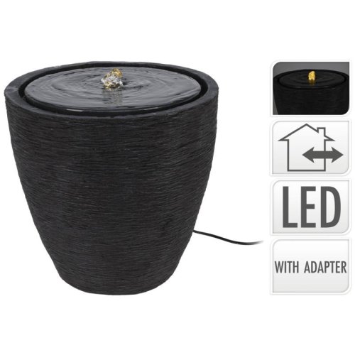 fontána, moderní design s led, 6 led, materiál: polyresin: s venkovním adaptérem ip44 (4.24w / 12vac/400ma), přívodní kabel: 200cm, materiál: polyresin, velikost: 35x35x35cm, s venkovním adaptérem ip44 (4.24w / 12vac/400ma)